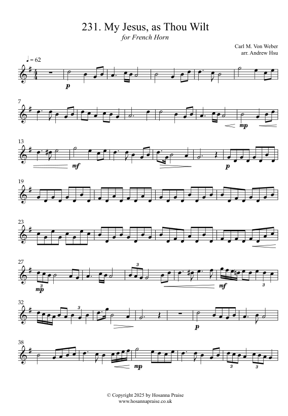 French Horn has a mellow, warm and gentle sound. It suites this hymn very well as we humbly ask our Lord Jesus to strengthen our faith and guide our every steps in life, whether through sorrow or joy that His will be done!