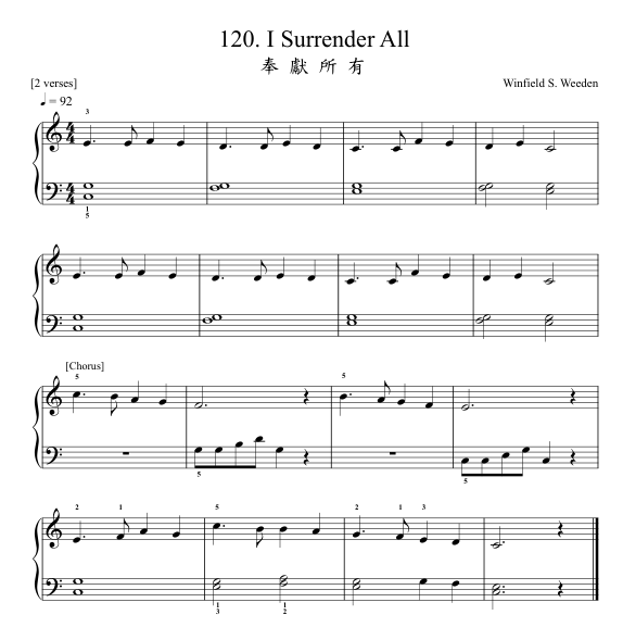 Hallelujah, praise the Lord! The second “Playing Hymns Made Really Easy” Tutorial video for hymn 120 “I Surrender All”. This hymn has hands position changes as well as some tricky manoeuvres. It is fun to learn and play. Sincerely hope that you all can enjoy learning and playing this hymn.