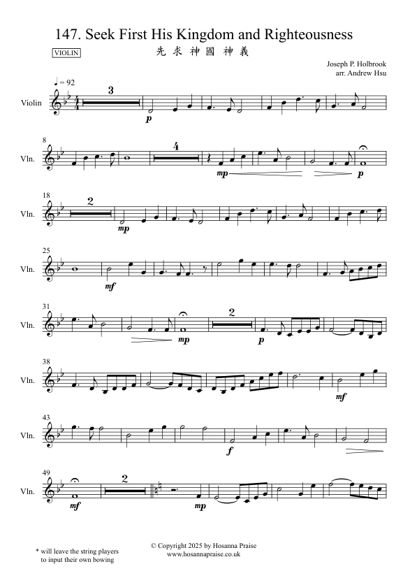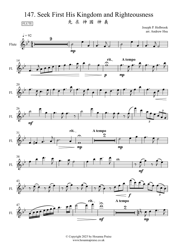 Hallelujah, praise the Lord! An arrangement for flute, violin and piano hymn 147. Have try to keep everything simple to portrait the simplicity of our Christians’ life on earth.