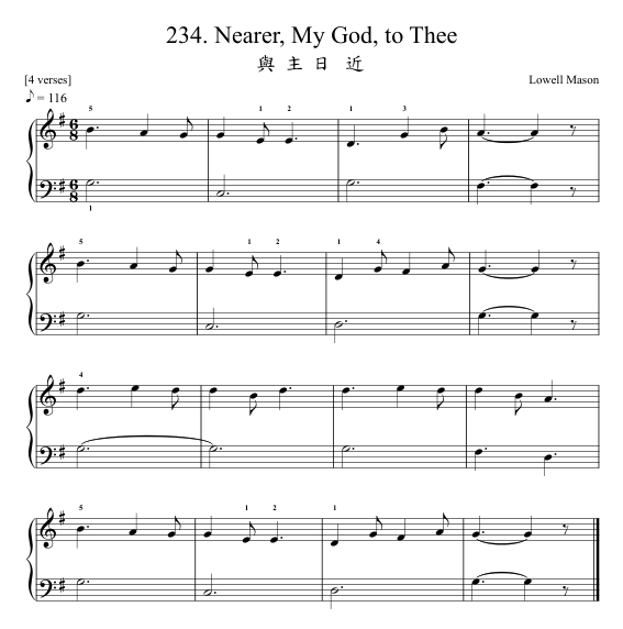 The hymn is based on the story of Jacob’s Ladder. Tells of a dream Jacob had while fleeing his brother, where he saw a ladder reaching from the earth to heaven with angels ascending and descending it. At the top, God promised Jacob and his descendants the land, countless future offspring, and universal blessing. Jacob awoke, realizing the place was holy as God’s house and named it Bethel. He then set up the stone he used as a pillow as a pillar and poured oil on it as an offering, beginning a relationship where God promised to be with Jacob and fulfil his promises. A well-loved hymn by many, melody with simple left hand accompaniment makes it easy to learn and play. Praise the Lord!