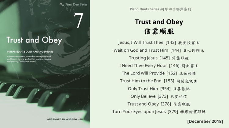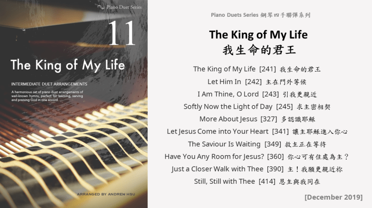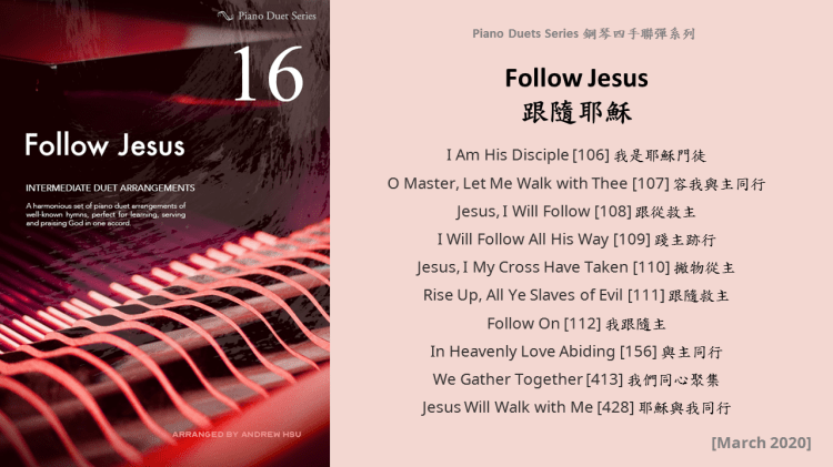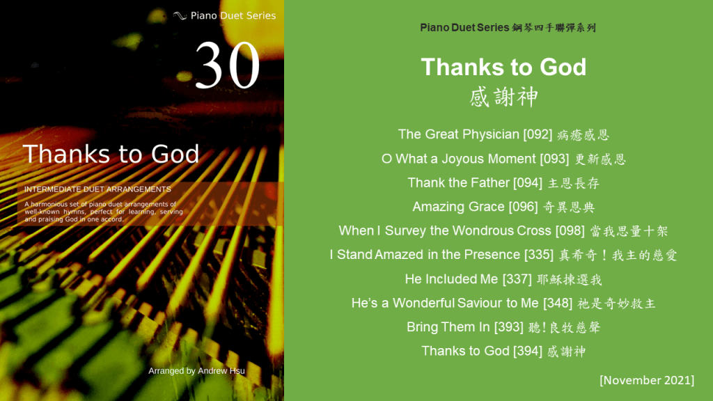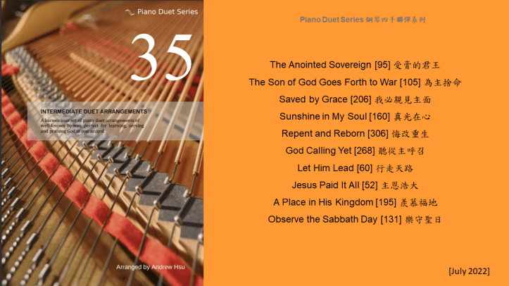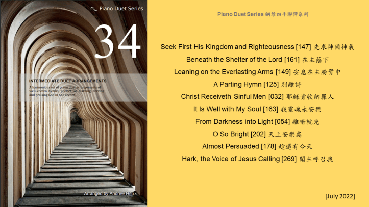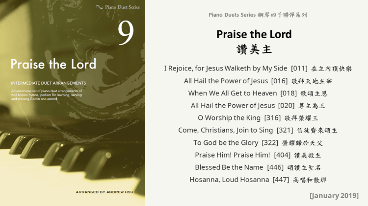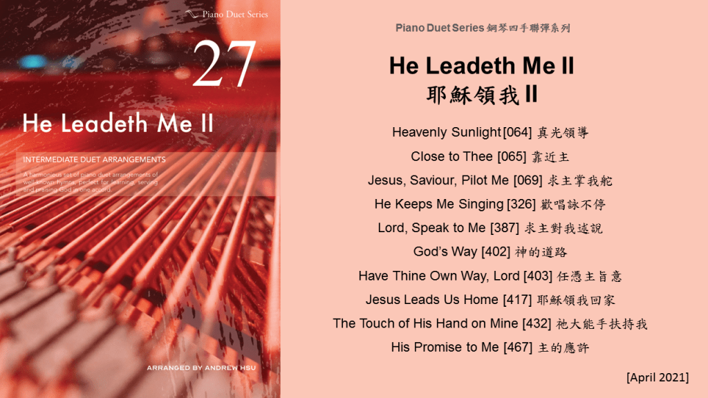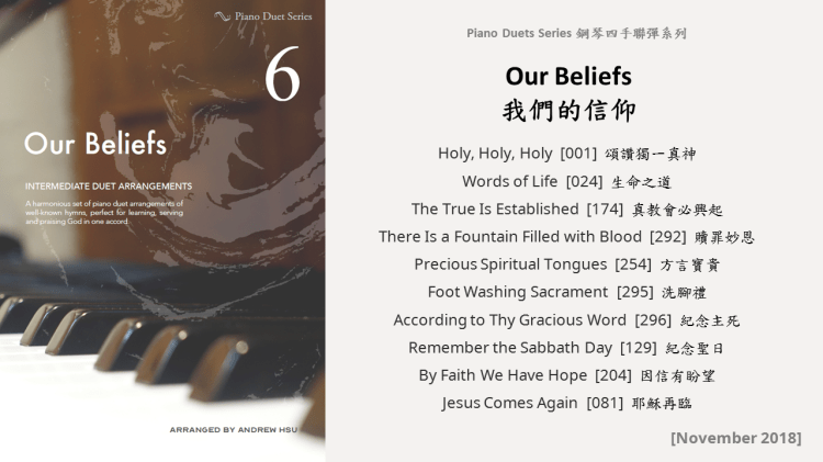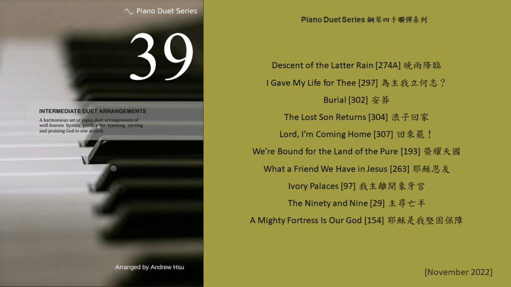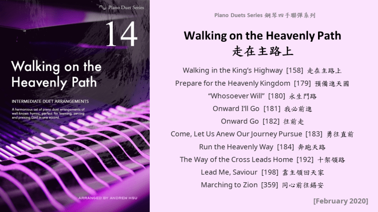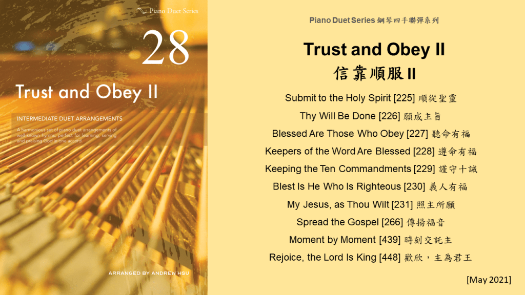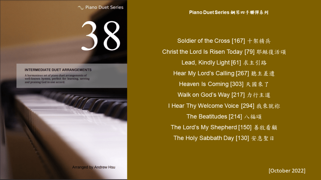 Since completing the Hymns of Praise Easy Arrangements for Piano to allow my twelve-year-old son to learn and play the hymns published by the church, he has always been eager to play the piano along with me. This inspired me to arrange another album for four hands on the piano. In this way, not only are my son and I able to praise God together, but children and youths in church can also enjoy a precious opportunity to use both of their hands to learn, praise and serve God with one accord. Since then, I have time to add more and more books, praise the Lord!