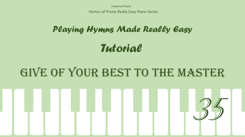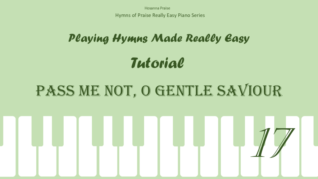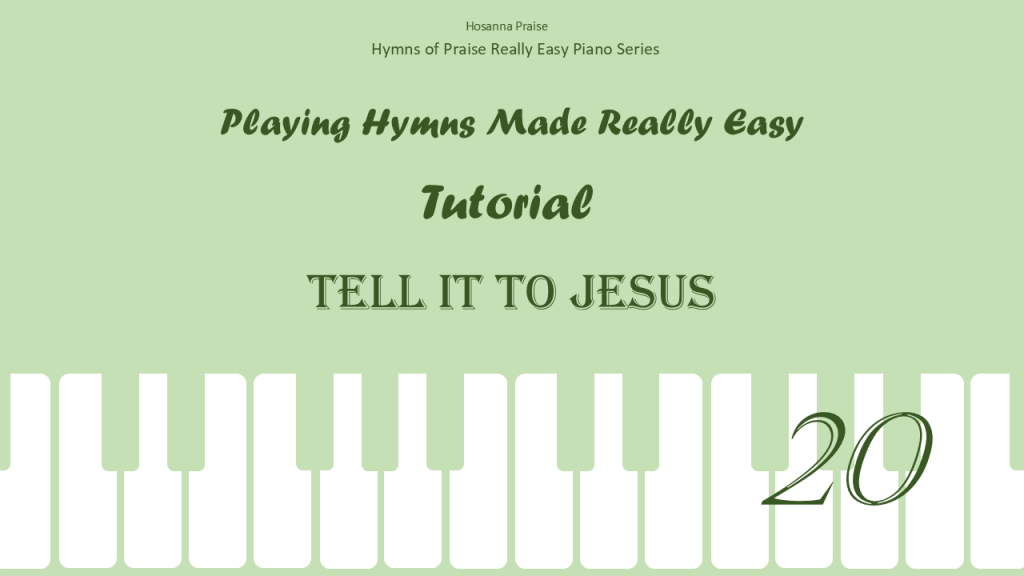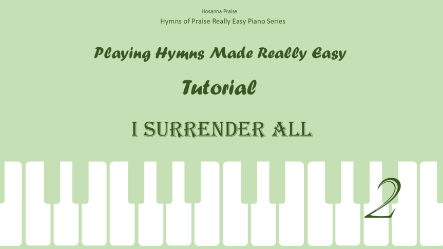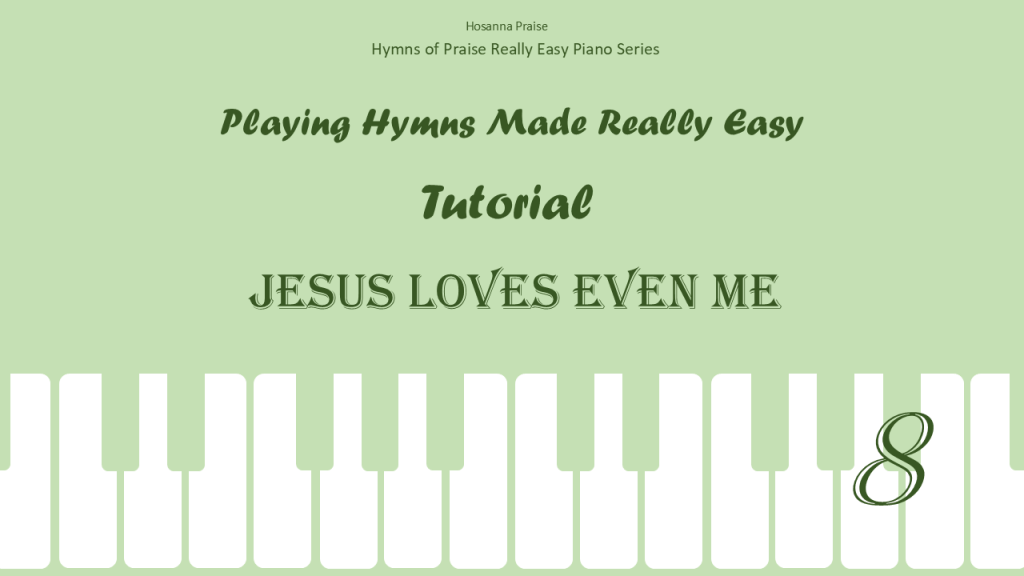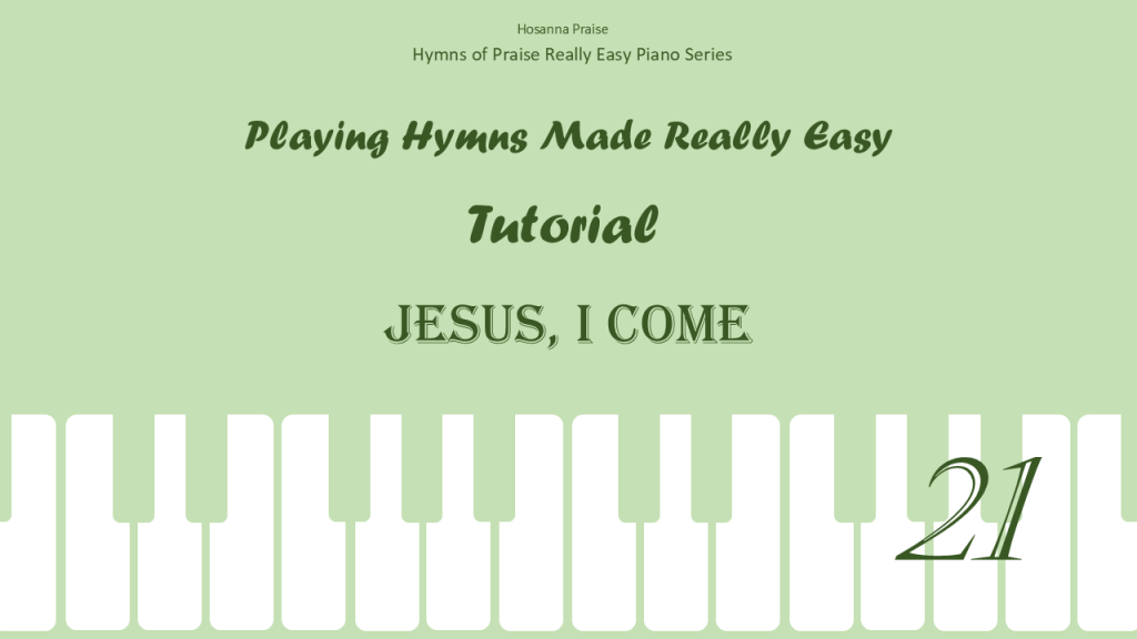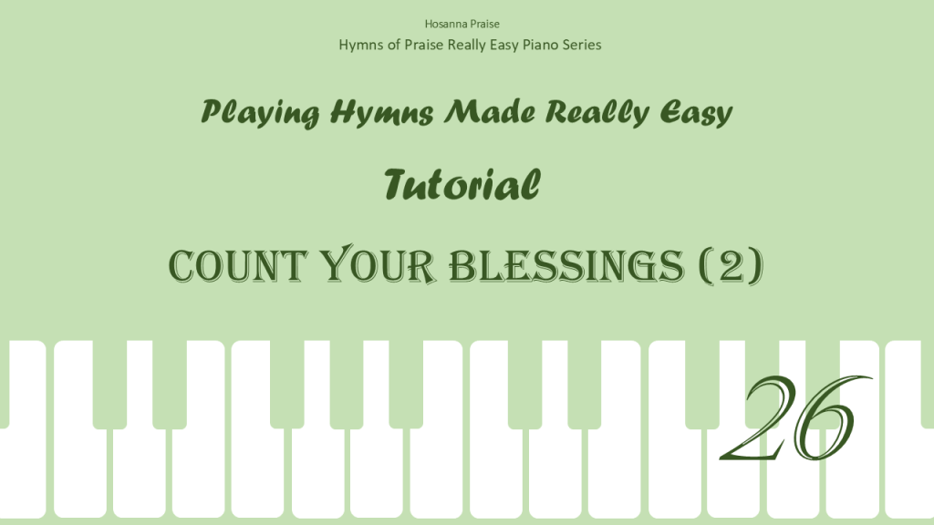 Each tutorial has easy step by step guide with clear explanation and instruction, covers foundation skills like learning the keyboard layout, reading music and basic music theory. All the hymns arrangements are made really easy into C major, G major [1 sharp #] and F major [1 flat b]. Right hand playing the main hymn melody while the left hand playing simple accompaniment. Learn to play the piano at your own time and own pace. A fast and fun way for a complete beginner wanting to learn to play the piano and to praise our Lord Jesus.