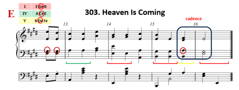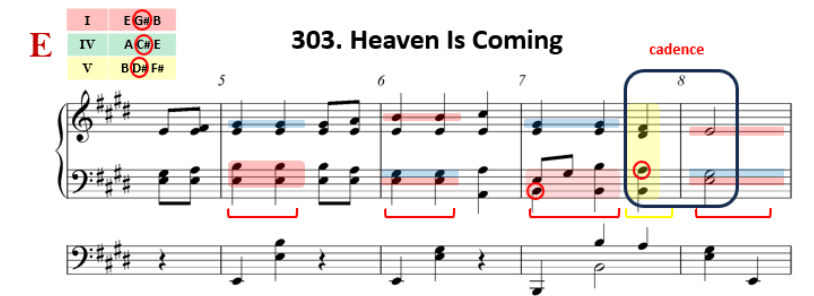 Line 4, we can do the same as line 3 for the first 2 bars. As there are more changes in harmonies towards the concluding 2 bars, we will revert into using what we did on line 2. The whole line will now be