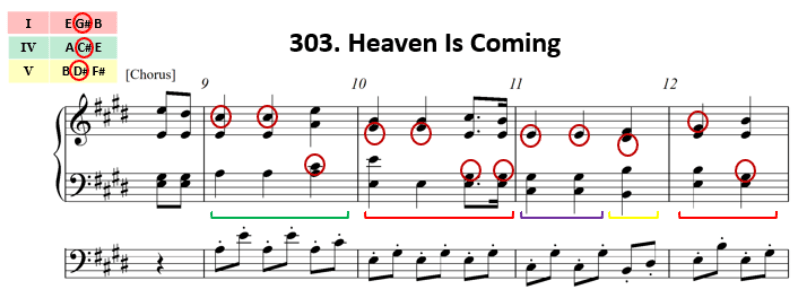 Line 3 chorus, remember when this tutorial series started, we use a bass note and chords on the left hand to accompany the right-hand melody?